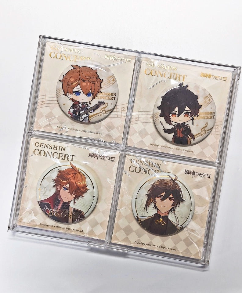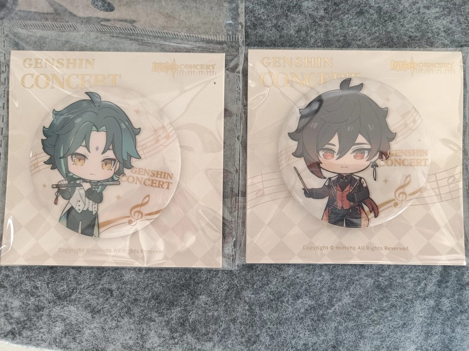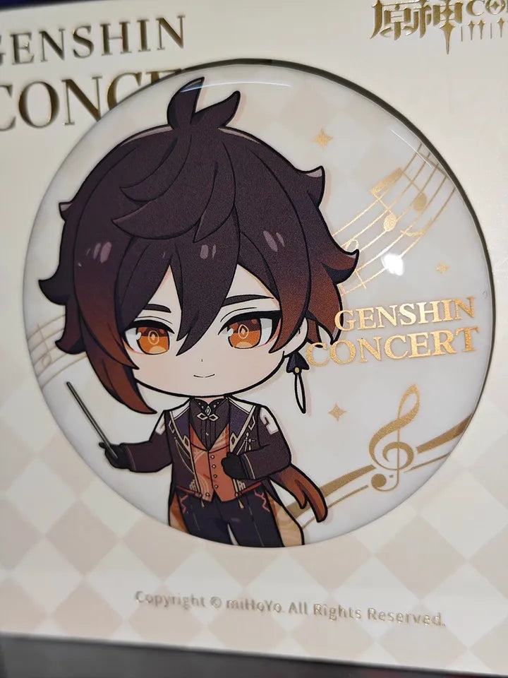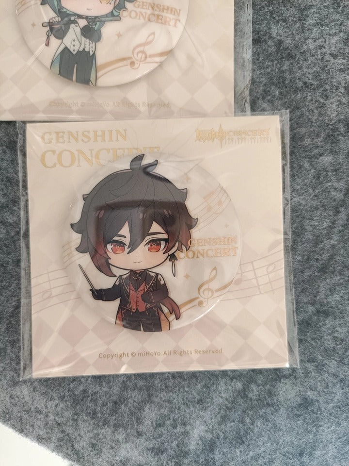 Explore the Echoes of Ages chibi pin badge series featuring characters like Xiao, Zhongli, Albedo, Tartaglia, Ganyu, Eula, and Diona. Designed with a concert-themed aesthetic, each badge highlights detailed artwork and a compact 58mm size, making it ideal for display, daily wear, or character collection.